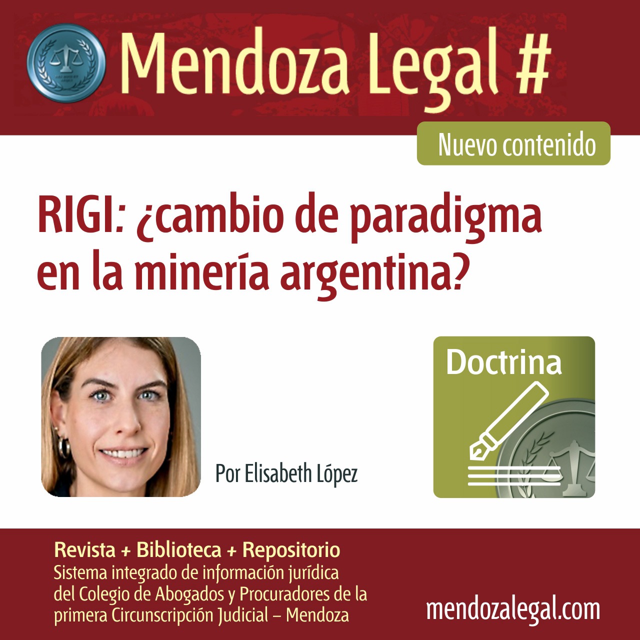 En Mendoza Legal, el sistema integrado de información jurídica del Colegio de Abogados y Procuradores de la Primera Circunscripción Judicial de Mendoza, los interesados pueden consultar el texto completo de este artículo de la Dra. Elizabeth López haciendoclic aquí: https://mendozalegal.com/2024/11/12/rigi-cambio-de-paradigma-en-la-mineria-argentina/
