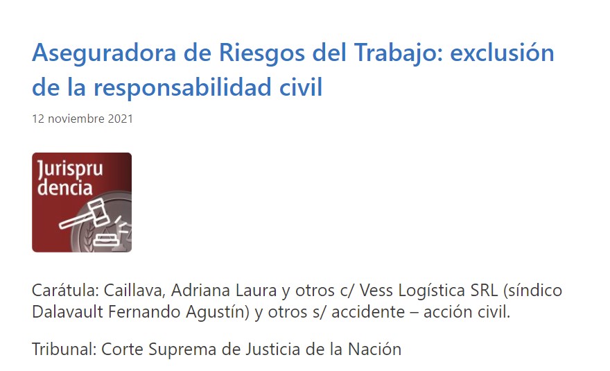 Fallo de la Corte Suprema de Justicia de la Nación. Carátula: Caillava, Adriana Laura y otros c/ Vess Logística SRL (síndico Dalavault Fernando Agustín) y otros s/ accidente – acción civil.