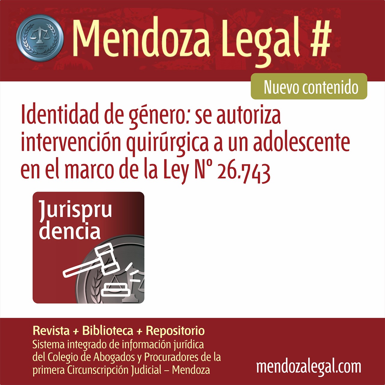Un fallo del Juzgado de Familia N 3 de San Juan hizo lugar al pedido de autorización de un adolescente de 16 años para realizarse una intervención quirúrgica en el marco de la Ley N 26.743 de Identidad de Género.