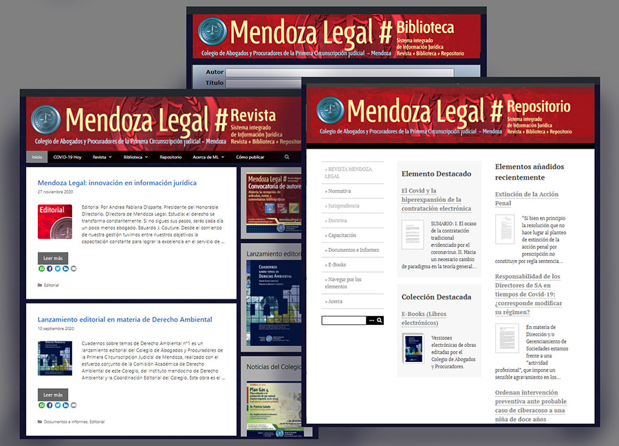 Finalmente Mendoza Legal es también un repositorio de información que aloja todas las producciones del Colegio y otros contenidos relevantes para los profesionales del Derecho en una plataforma informática. El sistema cumple con protocolos que permitirán intercambiar información con otros repositorios y sistemas de información del país.