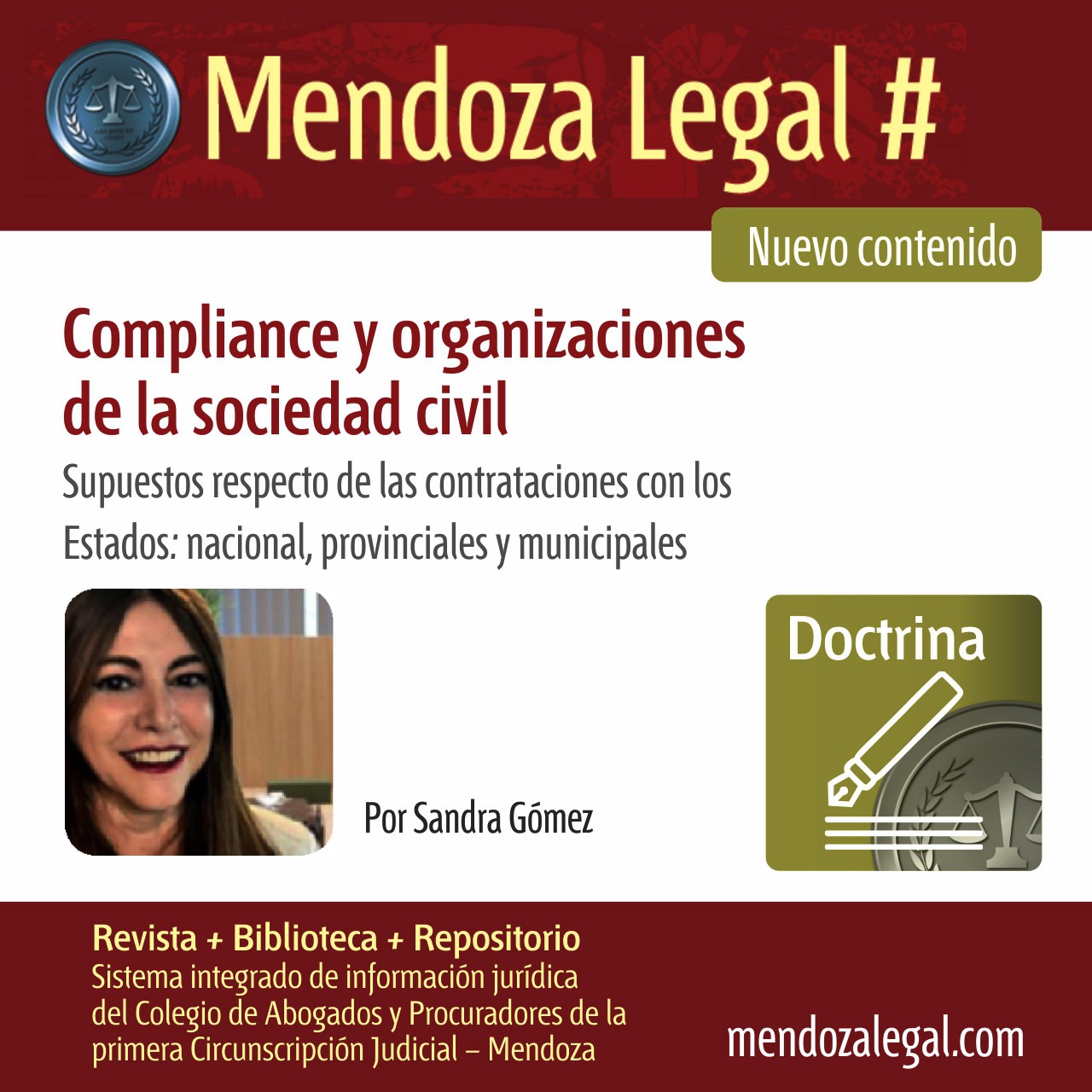 Mendoza Legal es el sistema integrado de información jurídica del Colegio de Abogados y Procuradores de la Primera Circunscripción Judicial de Mendoza. Una de sus últimas publicaciones ofrece un artículo de Sandra Gómez, abogada, diplomada en Compliance, Ética Corporativa y Dirección de Procesos de Integridad, por la Universidad de Mendoza, y miembro de la comisión de Compliance, Integridad y Transparencia del Colegio de Abogados de la Primera Circunscripción Judicial de Mendoza. Además, forma parte de la Asociación Argentina de Ética y Compliance (AAEC), cuenta con certificación Internacional en Compliance (IFCA)- UCEMA y es docente del curso de Compliance y Sistemas de Gestión de la Fundación Ideal.
