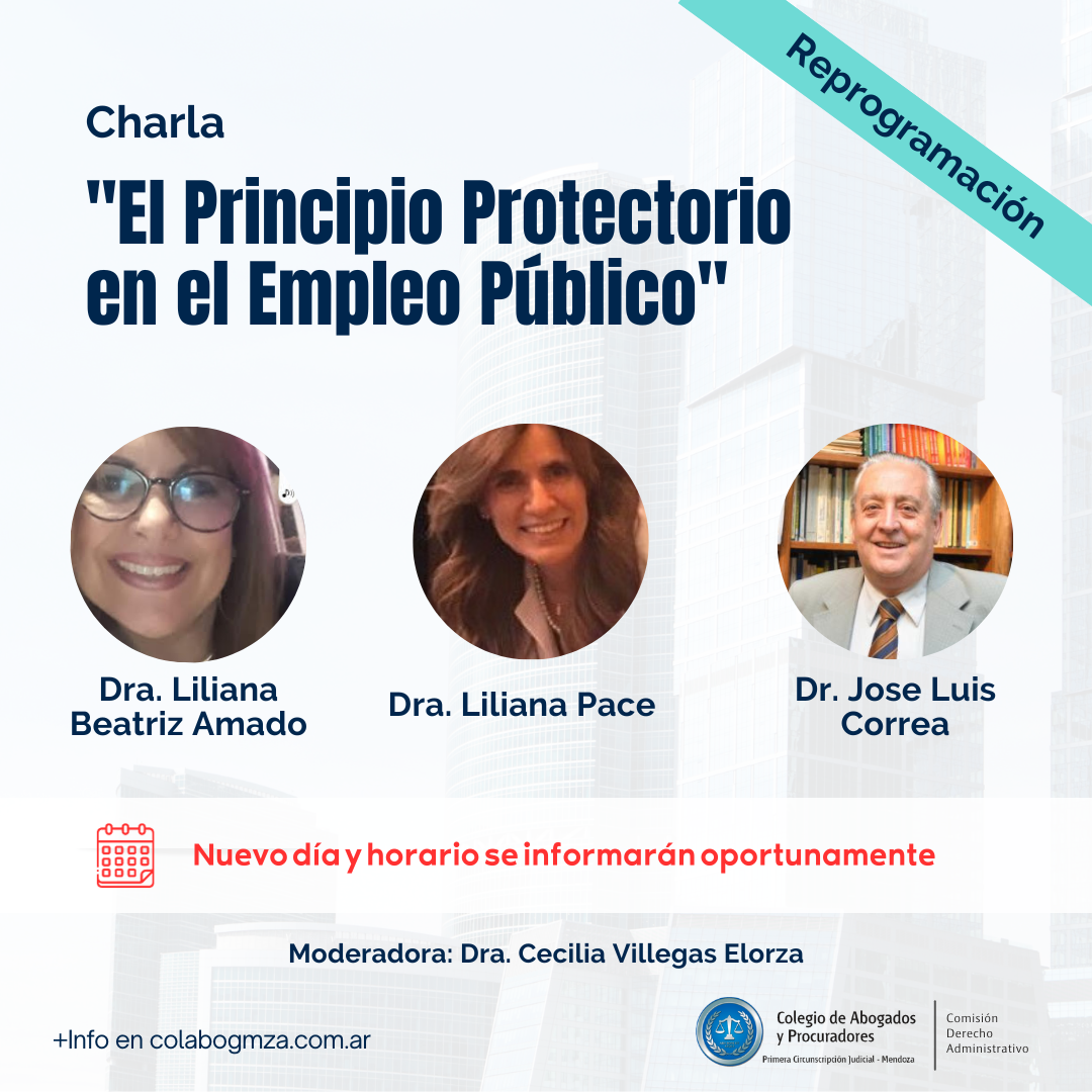 El Colegio de Abogados informó que reprogramará el curso titulado «El Principio Protectorio en el Empleo Público». La nueva fecha se comunicará por este medio y a través de las redes sociales oficiales de la Institución.