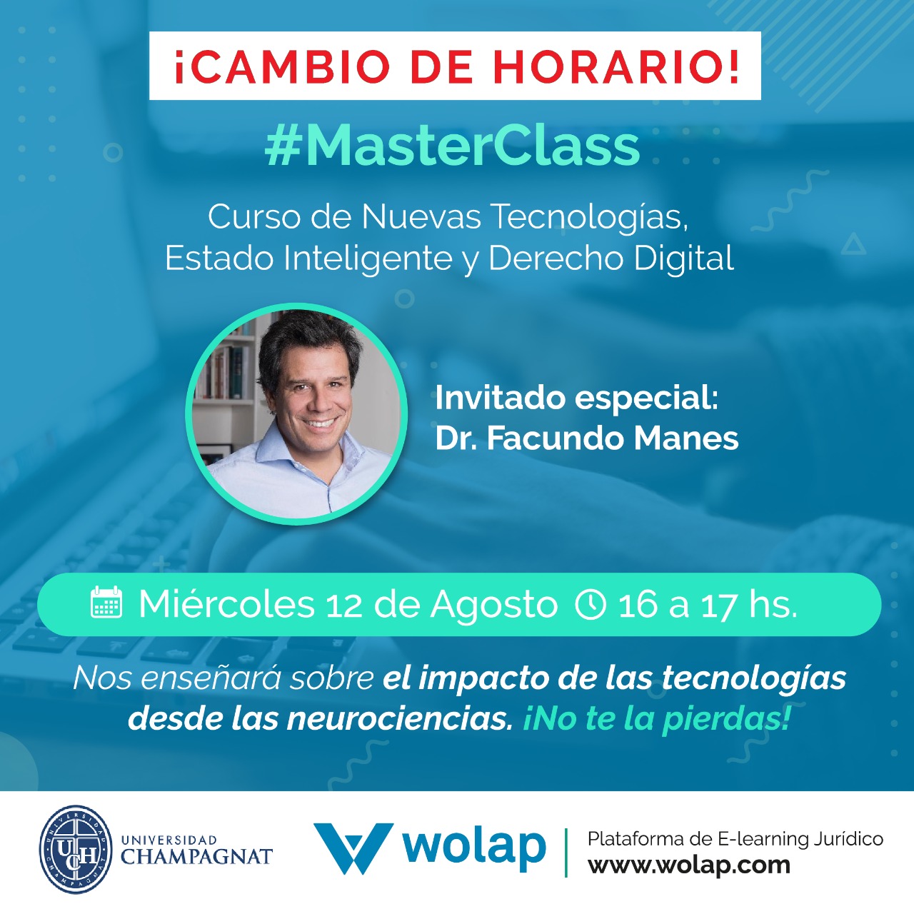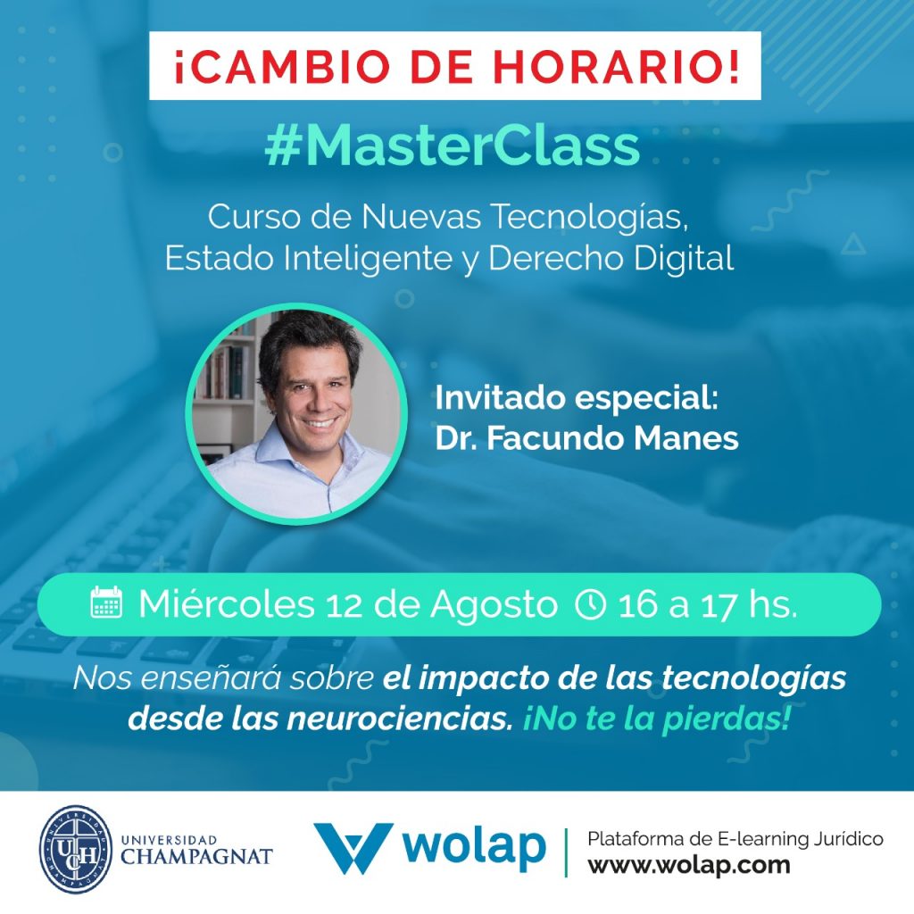 Es la clase de cierre de la Diplomatura en Derecho Digital y Estado de la Universidad Champagnat. Está prevista para el 30 de noviembre a las 10.30 en el auditorio de esa universidad.